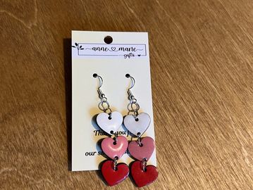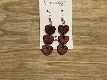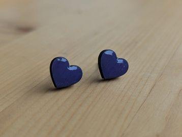 Tri-coloured birch wood hearts with a resin finish.