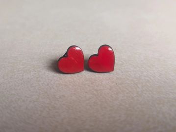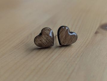 Birch wood hearts with a resin finish.