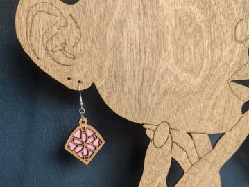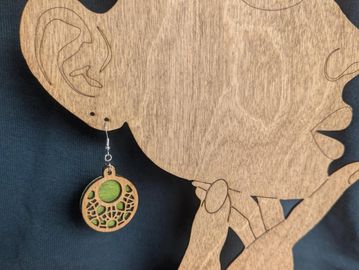 Dual-layer stained birch wood boho-style earrings.